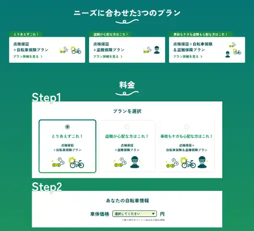 当サイトでは、ご自身の自転車ライフに合わせたプラン選びがスムーズに行えます。 |