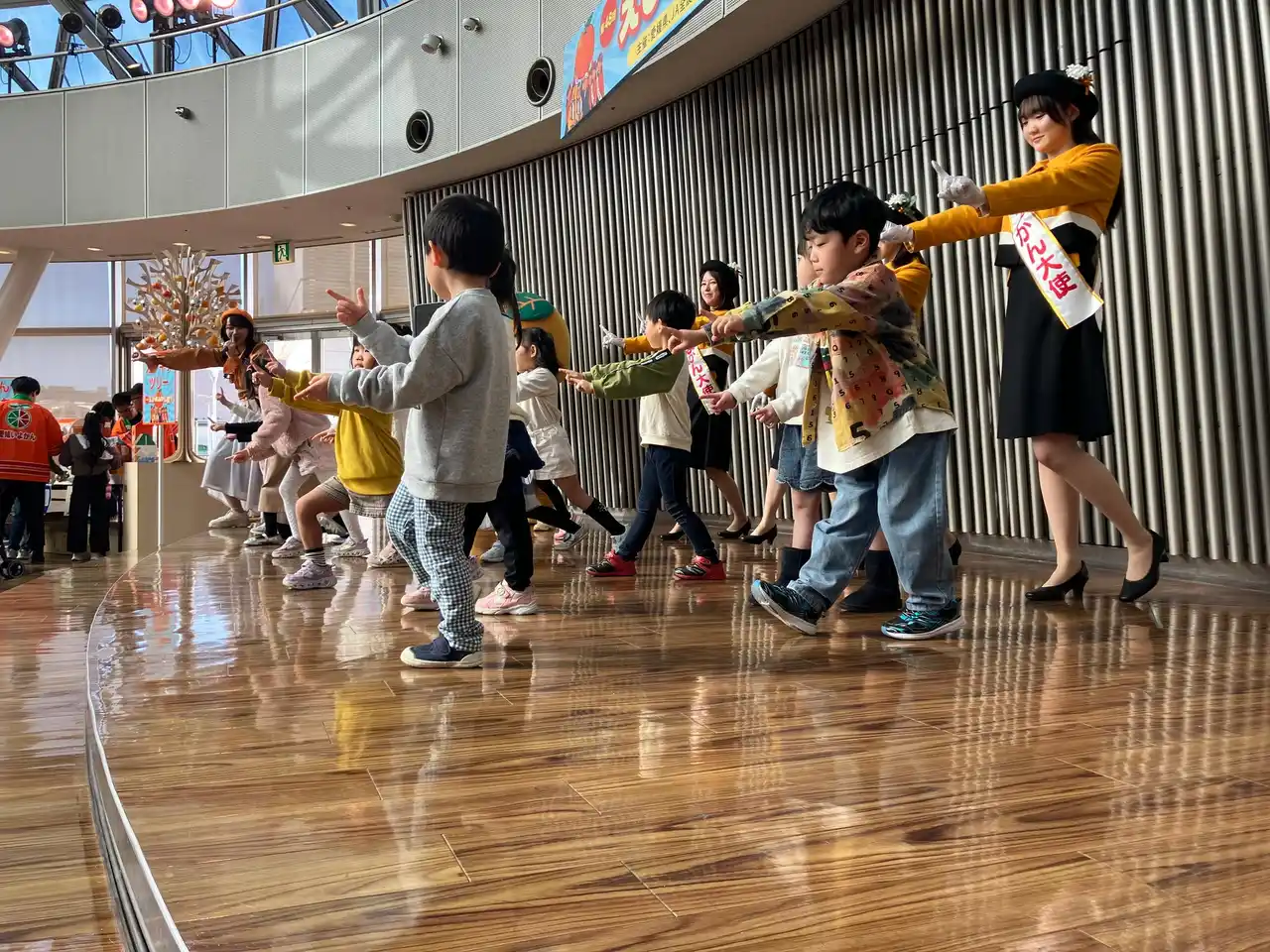 | さらに、愛媛いよかん大使の皆さんにとっても、今回が「旬!旬!音頭」の初披露ということで、子どもたちと一緒に楽しく踊っていただきました。 | |||||||||||||||