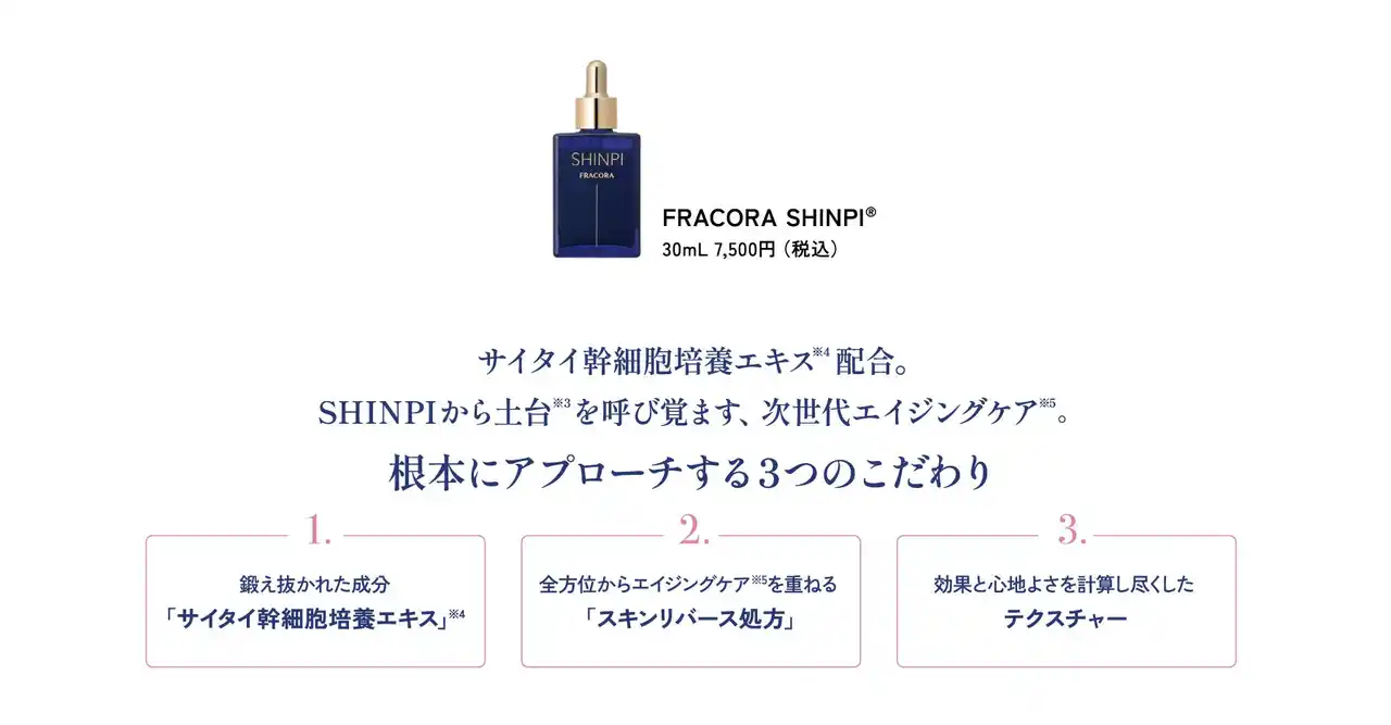 SHINPIシリーズ共通の独自成分。年齢が気になる肌の土台※1を守りながら、効果的にケアします。 |