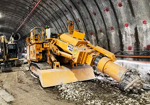 山岳トンネル工事において切羽作業は最も危険な作業であるとともに、作業の多くが粉じんを伴うことから健康被害も懸念されます。その中で、機械掘削工法では、重機オペレーターが長時間の粉じん発生作業に従事するため、この作業を無人化することは生産性向上のみならず、安全面・環境面からも重要です。