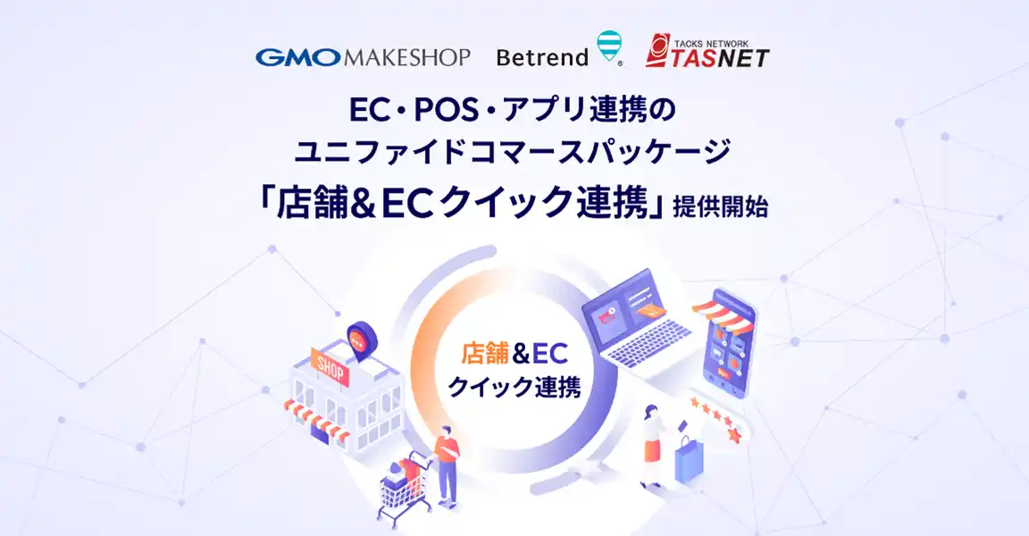 株式会社タスネット(代表取締役社長:山田 和司、以下タスネット)、GMOインターネットグループのGMOメイクショップ株式会社(代表取締役社長CEO:向畑 憲良、以下GMOメイクショップ)、ビートレンド株式会社(代表取締役社長:井上 英昭、以下ビートレンド)は、小売業における店舗・EC・アプリのシームレスな連携を開発不要かつ最短1ヶ月で導入可能とする「店舗&ECクイック連携」を、2026年1月22日(木)より提供開始します。