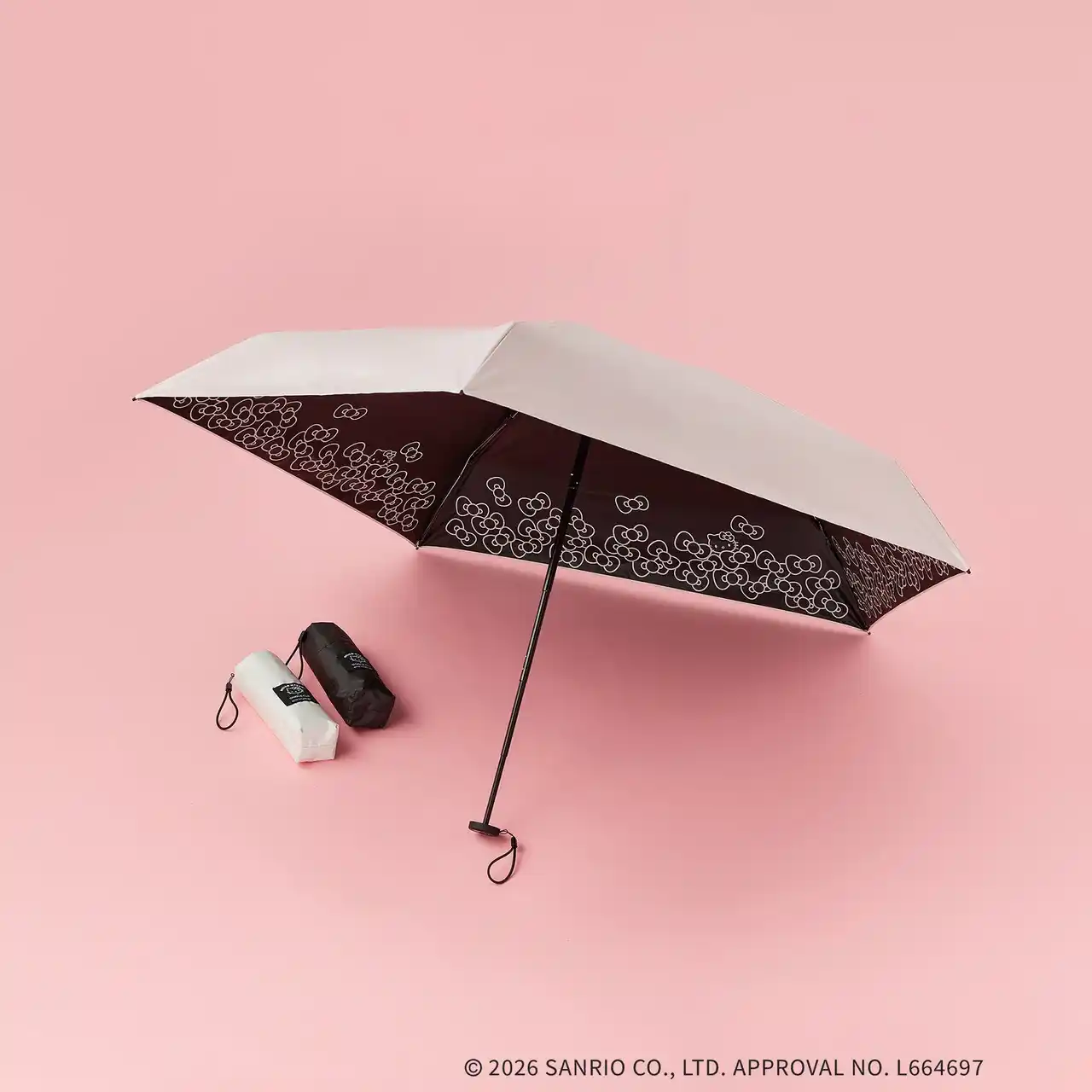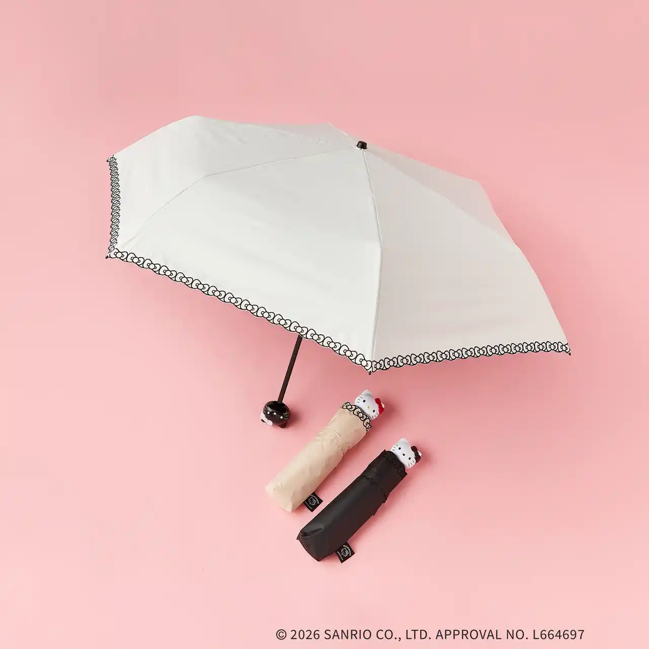 ハローキティのポイントデザインがかわいい晴雨兼用の折り畳み傘。 |