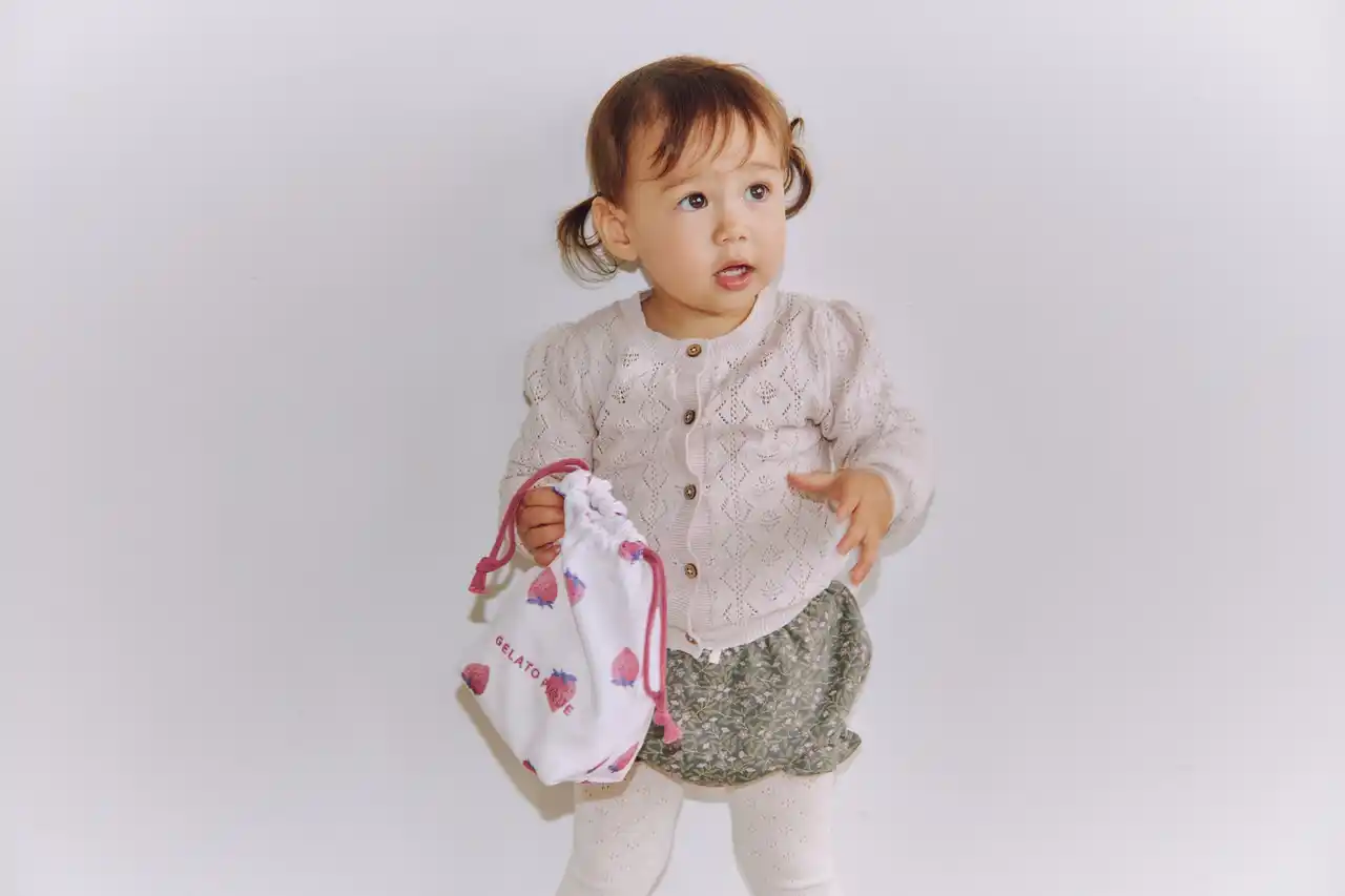 株式会社マッシュスタイルラボから2008年秋にデビューしたgelato piqueのキッズ&ベビーライン。オリジナリティを大切にしたカラーリングやデザイン、テキスタイルの肌触りと機能性にもこだわったgelato pique同様、生まれたてのベビーやキッズの繊細な肌にもやわらかな着心地を届けるウェアやグッズをサイズバリエーションとともに展開しています。 |