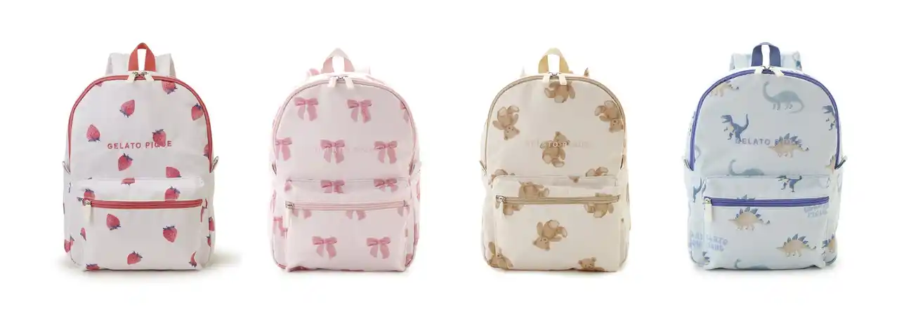 ストロベリー、リボン、ダイナソー、ベアの4つのモチーフが、入園・入学や新学年のスタートを華やかに彩ります。 |