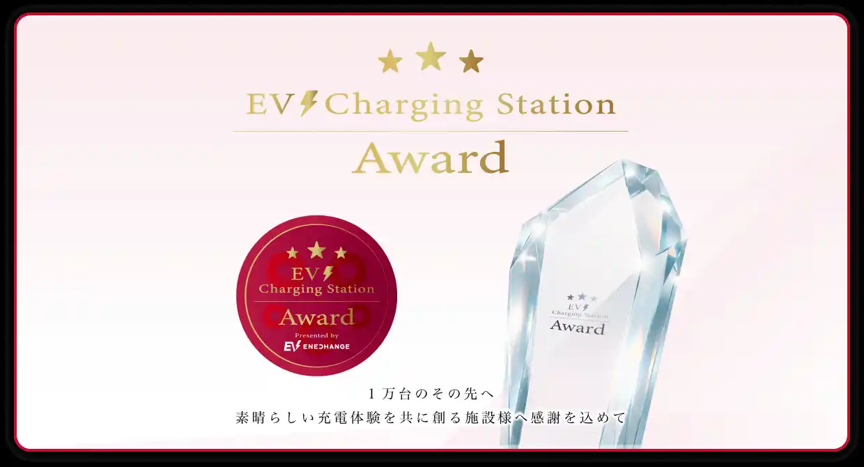 全国のEV充電エネチェンジのスポットの中から、ユーザーの声と多角的な視点をもとに選出した「理想の充電スポット」を表彰する制度として、「EV Charging Station Award(以下、EVCS Award)」を設立いたしました。EVCS Awardは、充電器を設置しているだけでなく、日々の維持管理や利用者へのホスピタリティにおいて優れた取り組みを行い、日本のEVライフを支える施設に感謝を伝え、称えることを目的としています。 |