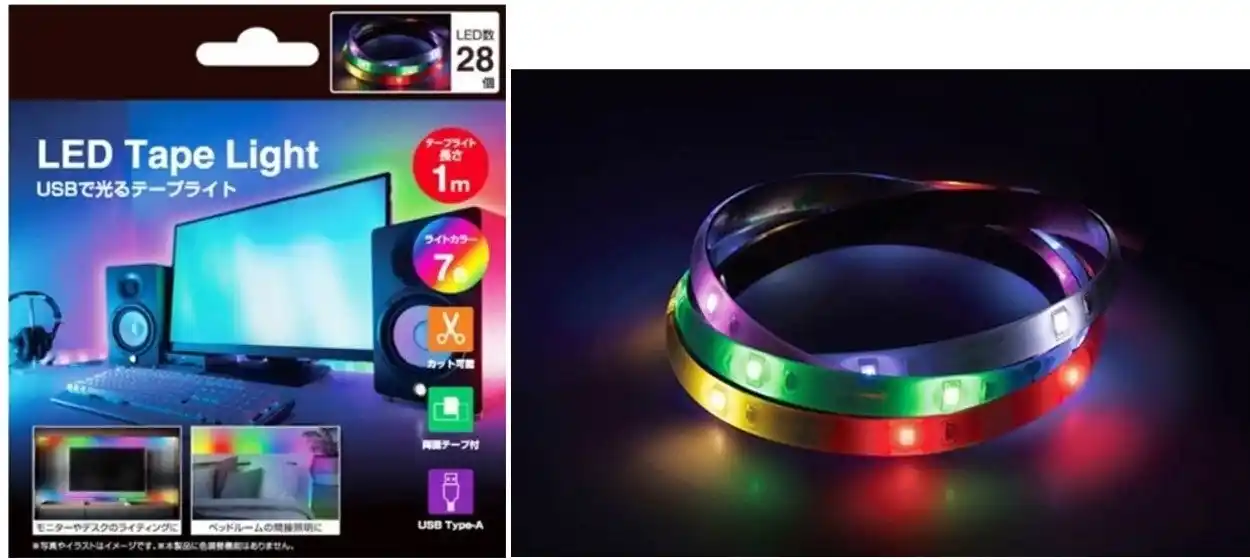 モニターやデスクのライティング、寝室の間接照明にも使えるテープライトです。 |