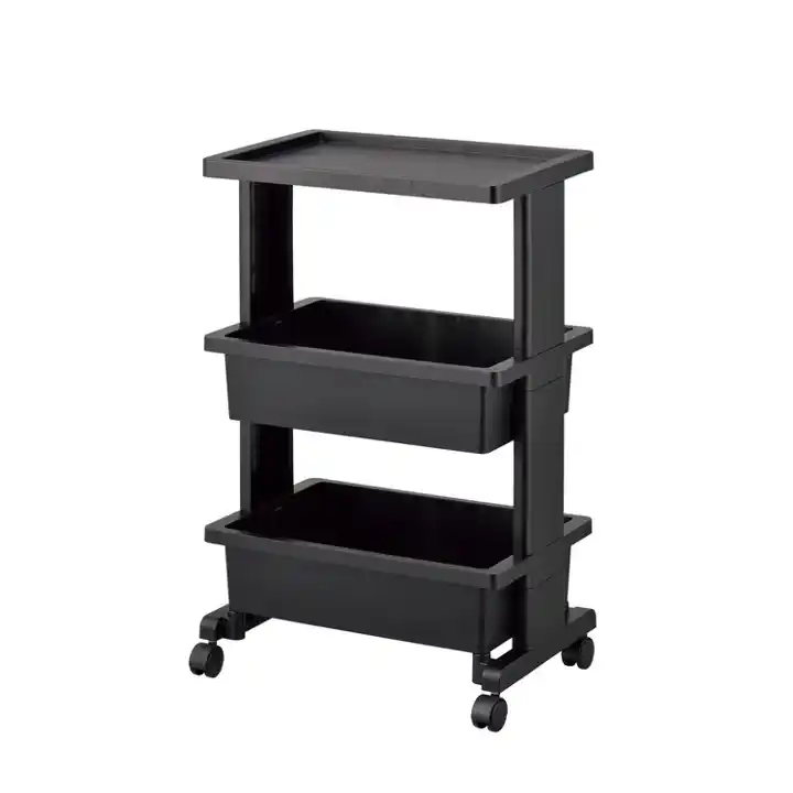 深さのあるカゴと物が置ける丈夫な天板、キャスター付きで、作業中もスムーズに物が取り出せるテーブルワゴンです。 |