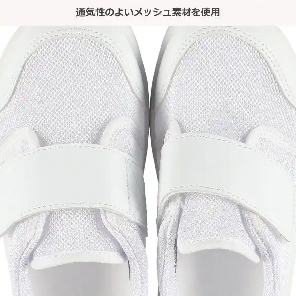 | 足の甲が触れる部分には、通気性に優れたメッシュ素材を採用。長時間履いていても足が蒸れにくく、快適な履き心地を維持いたします。また、軽量設計により、足への負担を最小限に抑え、軽やかな足取りをサポート。学校での授業や体育の時間はもちろん、室内での活動も快適にお過ごしいただけます。 | ||||||||||||||