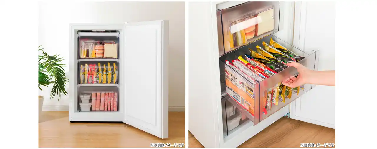 1. 冷凍食材を整理しやすい3段引き出し式