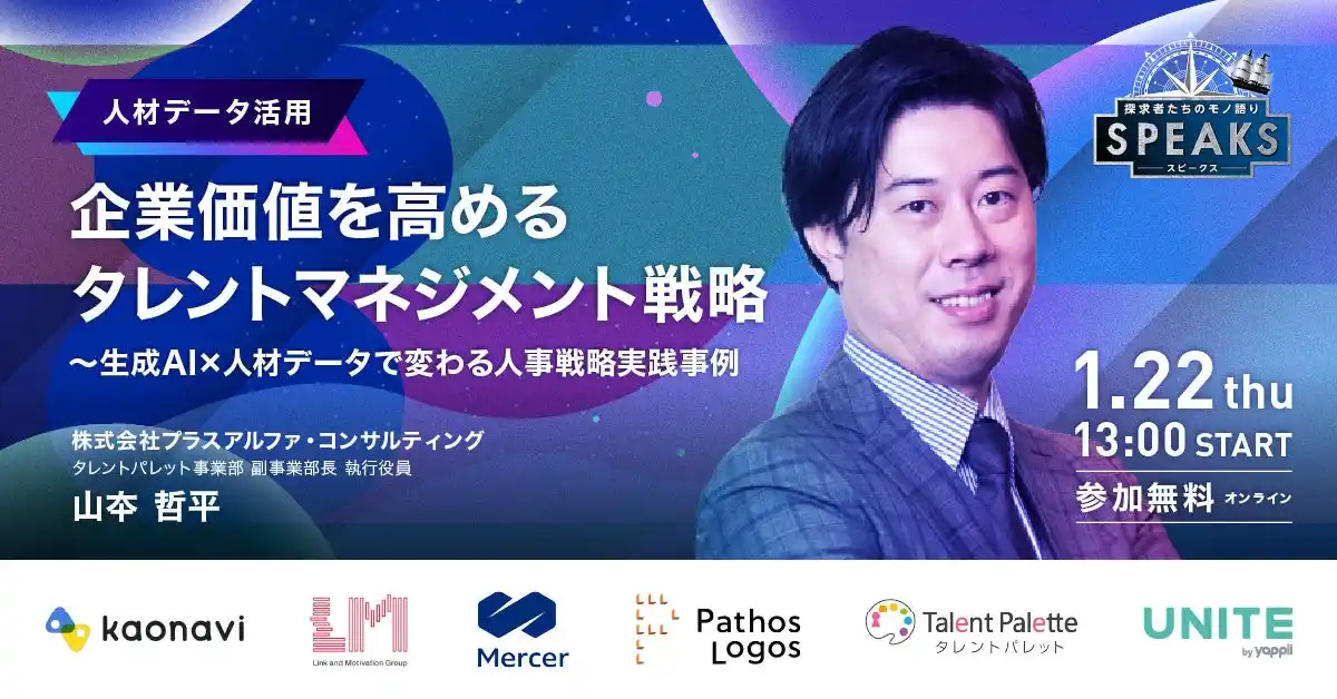 | 株式会社ニューピークス(NEWPEAKS.inc)は1月22日(木)、オンラインセミナーイベント「SPEAKS HRリーダーズサミット」を開催します。 |
