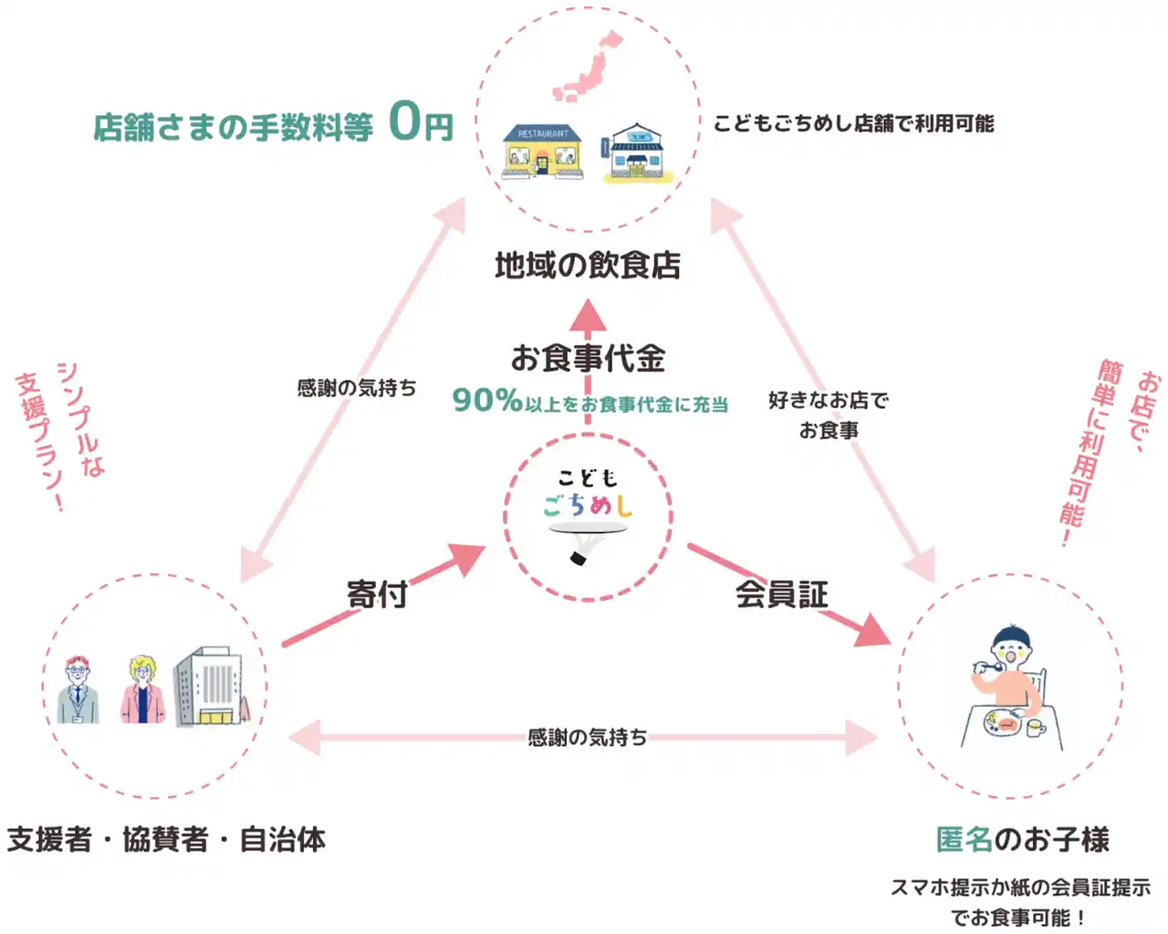 地域経済への還元:支援金を地元の飲食店へ支払うことで、社会貢献と同時に飲食店の売上向上に寄与します。 |