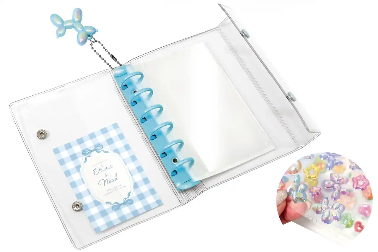 特徴:お気に入りのシールをきれいに整理・保管できるリフィル付きクリアシール手帳!集めたシールのコレクションはもちろん、整理にも!自由にデコれて自分好みにカスタマイズ♪チャームホール付きで好きなチャームもつけれます。持ち運びしやすいサイズ感で、いつでもどこでもシール選びが楽しめます。 |