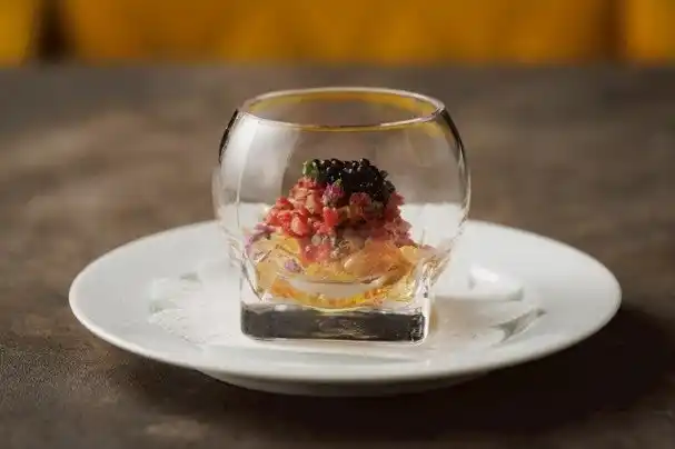 黒毛和牛タルタル キャビアとコンソメのジュレ |