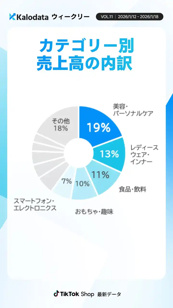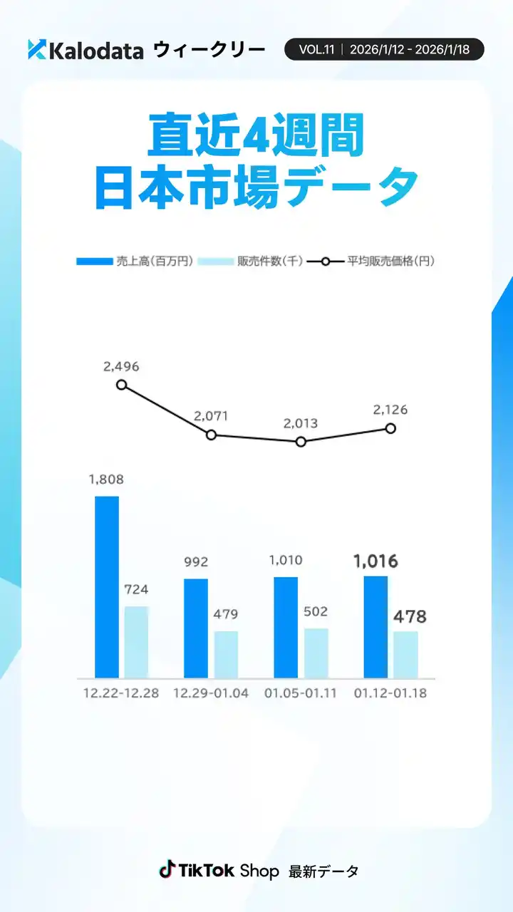 1月12日~1月18日の日本TikTok Shopは、GMV10.2億円(前週比+0.6%)と横ばいで推移しました。 |