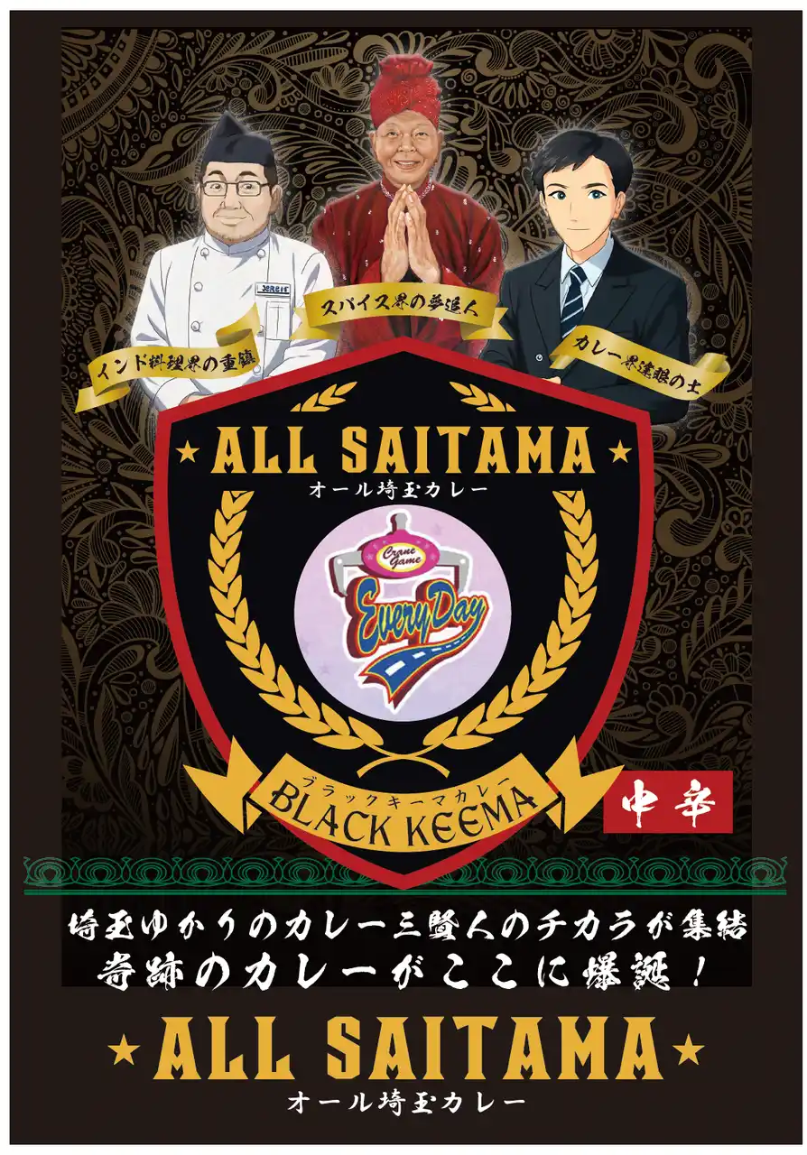 オールSAITAMAカレー ブラックキーマカレーは、「オールSAITAMA ブラックキーマカレー」は、埼玉県で活動するカレー業界のトップランナーが手掛ける特別なコラボレーションカレーです。スパイス・ルウ開発を手がける井上スパイス工業、インドカレーの名店デリーによる製造協力、そしてカレー総合研究所の企画・プロデュースにより、各分野の専門知識と技術を結集。トレンドである“ブラックカレー”を採用し、見た目のインパクトだけでなく、ポークキーマの濃厚な旨味とスパイスの奥深い香りを両立した、本格的でありながら幅広い年代に楽しめる味わいに仕上げました。単なるご当地商品にとどまらず、埼玉のカレー文化と可能性を全国へ発信することを目指した、こだわりの一品です。 |