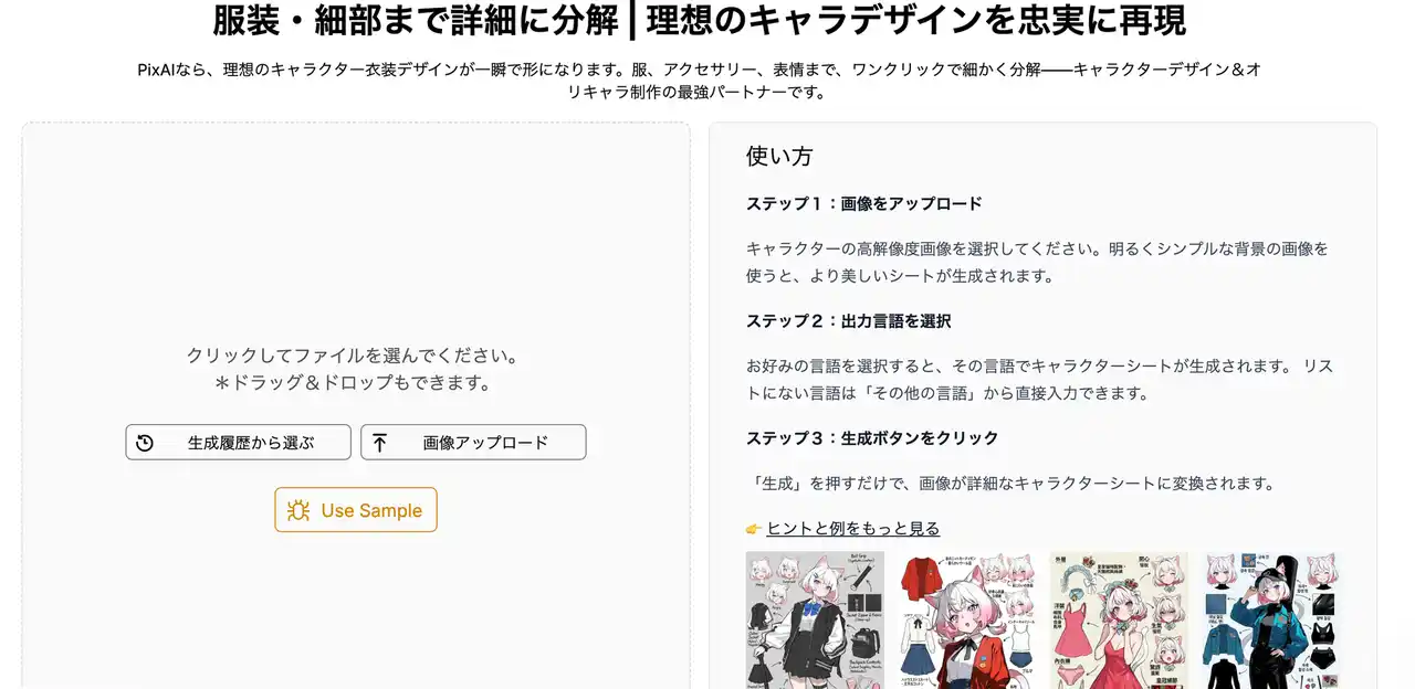 新たに追加した「キャラクターシート生成機能」は、キャラクターイラストを基に、見た目・設定項目・個性などをひとつの資料としてまとめられる機能です。 |