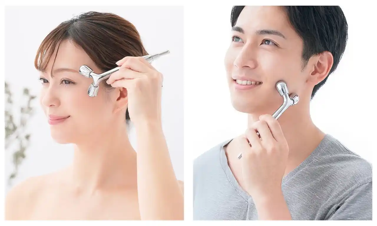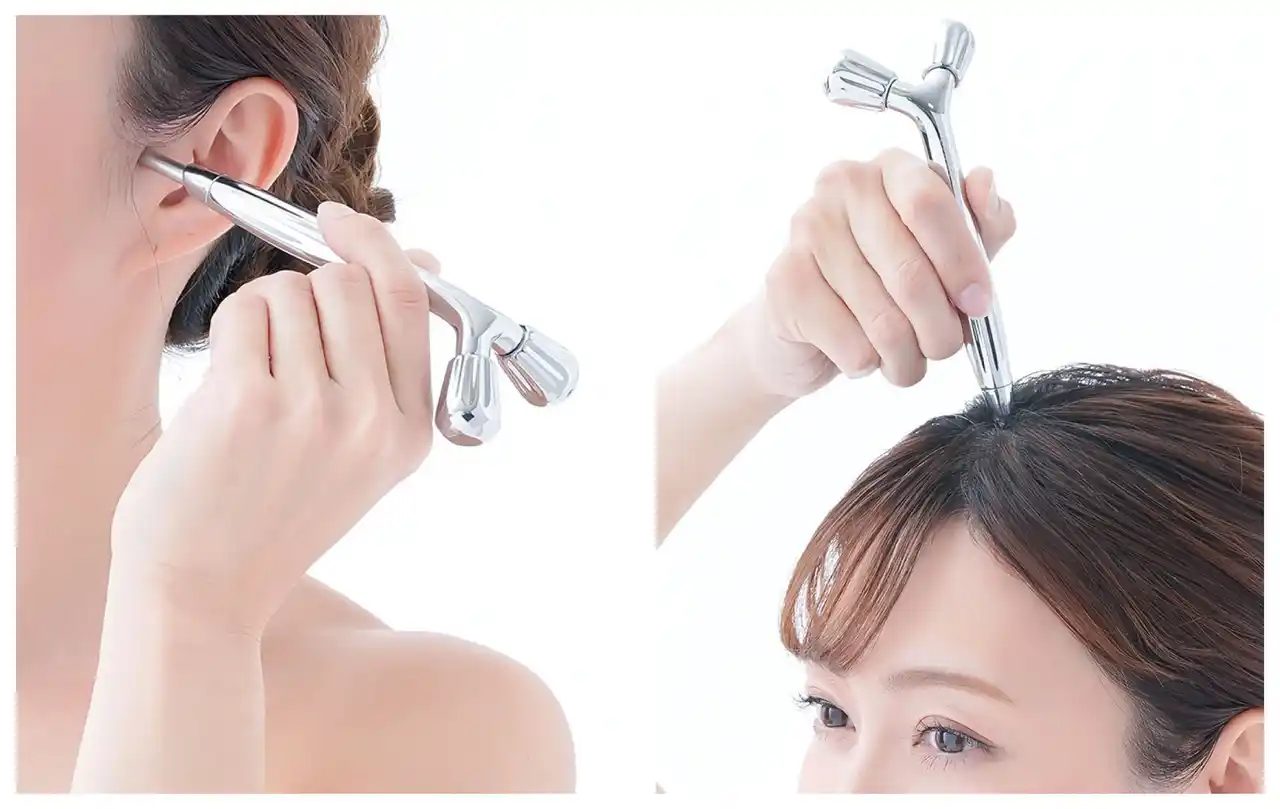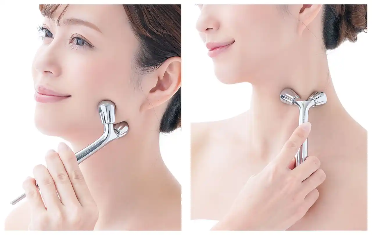 ローラーヘッド先端に磁石内蔵。顔や首・デコルテの肌をはさむようにスムーズにローリングできます。 |