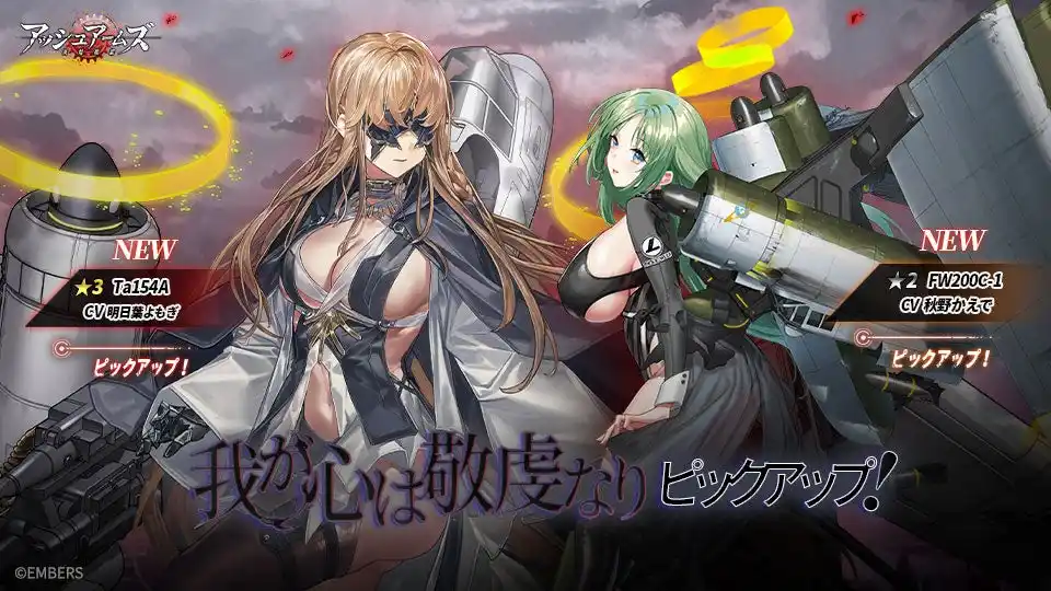 | 同時に開催される新規召集「我が心は敬虔なり」では、「Ta154A」および「FW200C-1」がピックアップされ確率アップします。 | |||