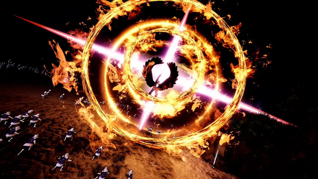 人型状態では刀、蹴り、拳を用いて、人獣型状態では翼を用いた広範囲の攻撃で戦場を火の海に変えて敵を壊滅させることができる。 |