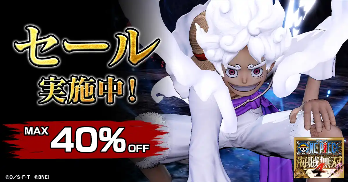 最大40%オフのお得なセールも実施中!ゲーム本編とギア5のルフィなどを含むDLCがセットになったパックも対象なので、この機会にぜひ爽快無双アクションをお楽しみください。 |