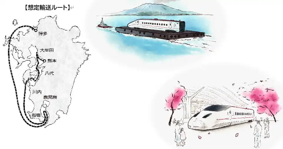 2026 年 3 月 28 日(土)の深夜から 3 月 29 日(日)の早朝にかけて、熊本総合車両所から熊本新港に 向けて「つばめ」の陸上輸送を行います。 |