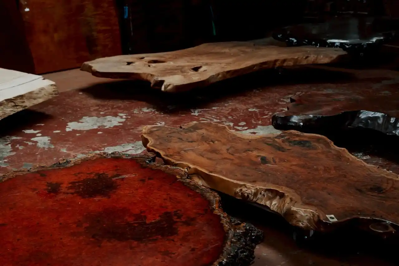 warehouse 3|プレミアム材ストック ・2,000mm~のプレミアム一枚板 ・花梨の瘤(コブ)など、唯一無二の表情を持つ素材 |