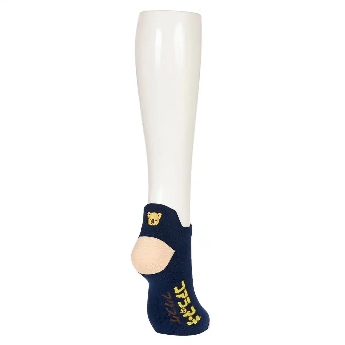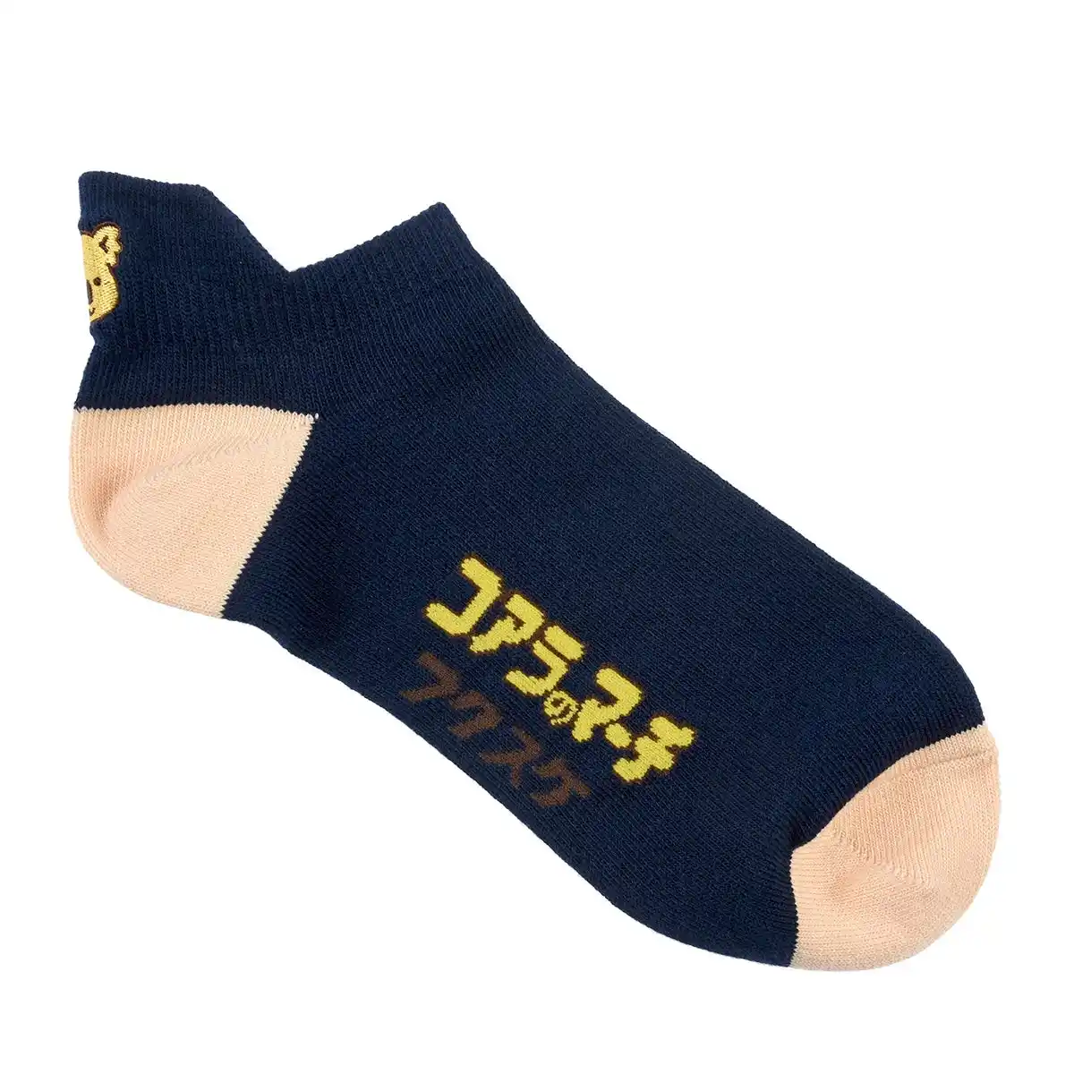 かかと部分にコアラのマーチくんの刺繍をあしらったスニーカー丈ソックスです。 |