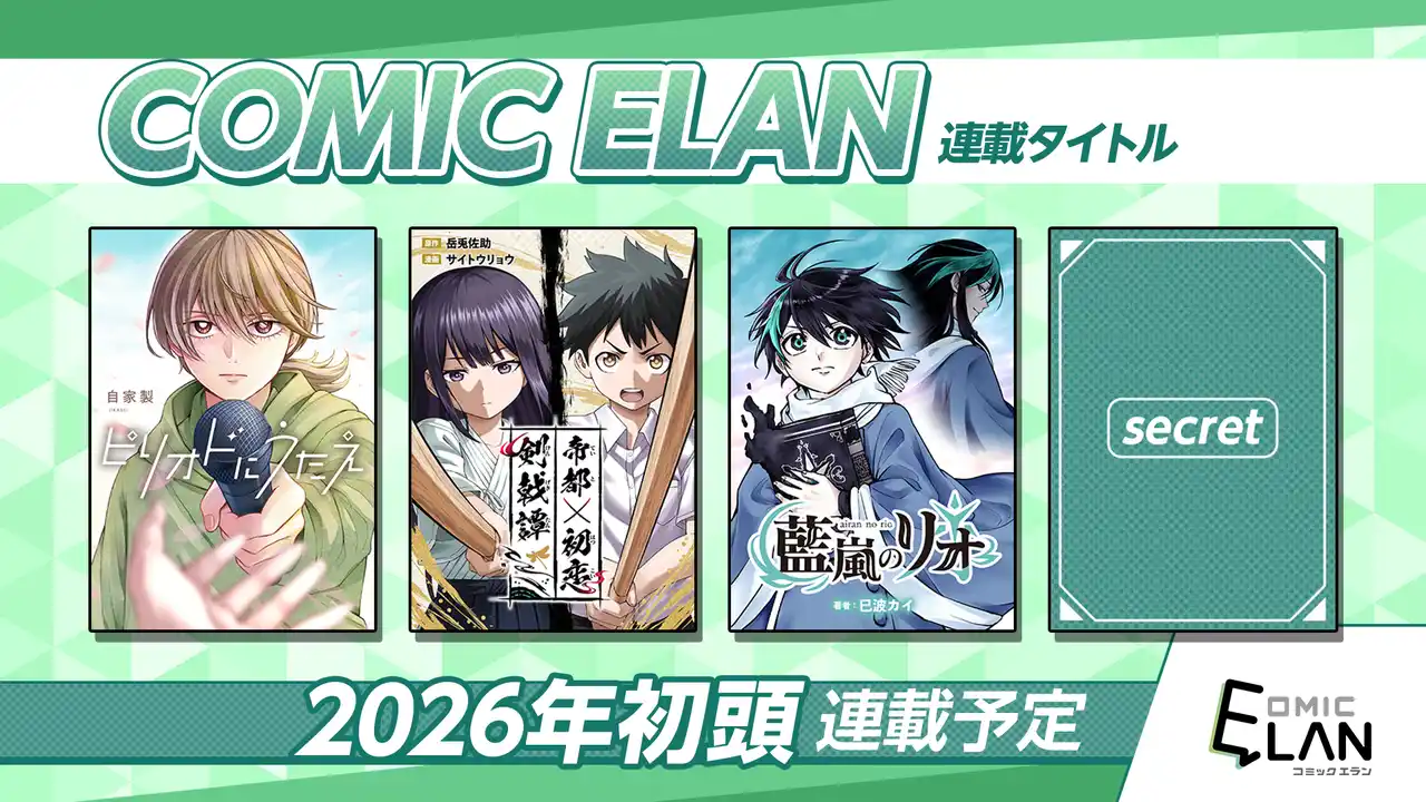 少年/青年向け作品の「COMIC ELAN」(コミックエラン)、少女/女性/TL作品の「Blossom」(ブロッサム)、「BL」作品を取り扱う「BLUE BELL」(ブルーベル)の3レーベルを設立し、2026年の配信を目標に制作を進めています。 |
