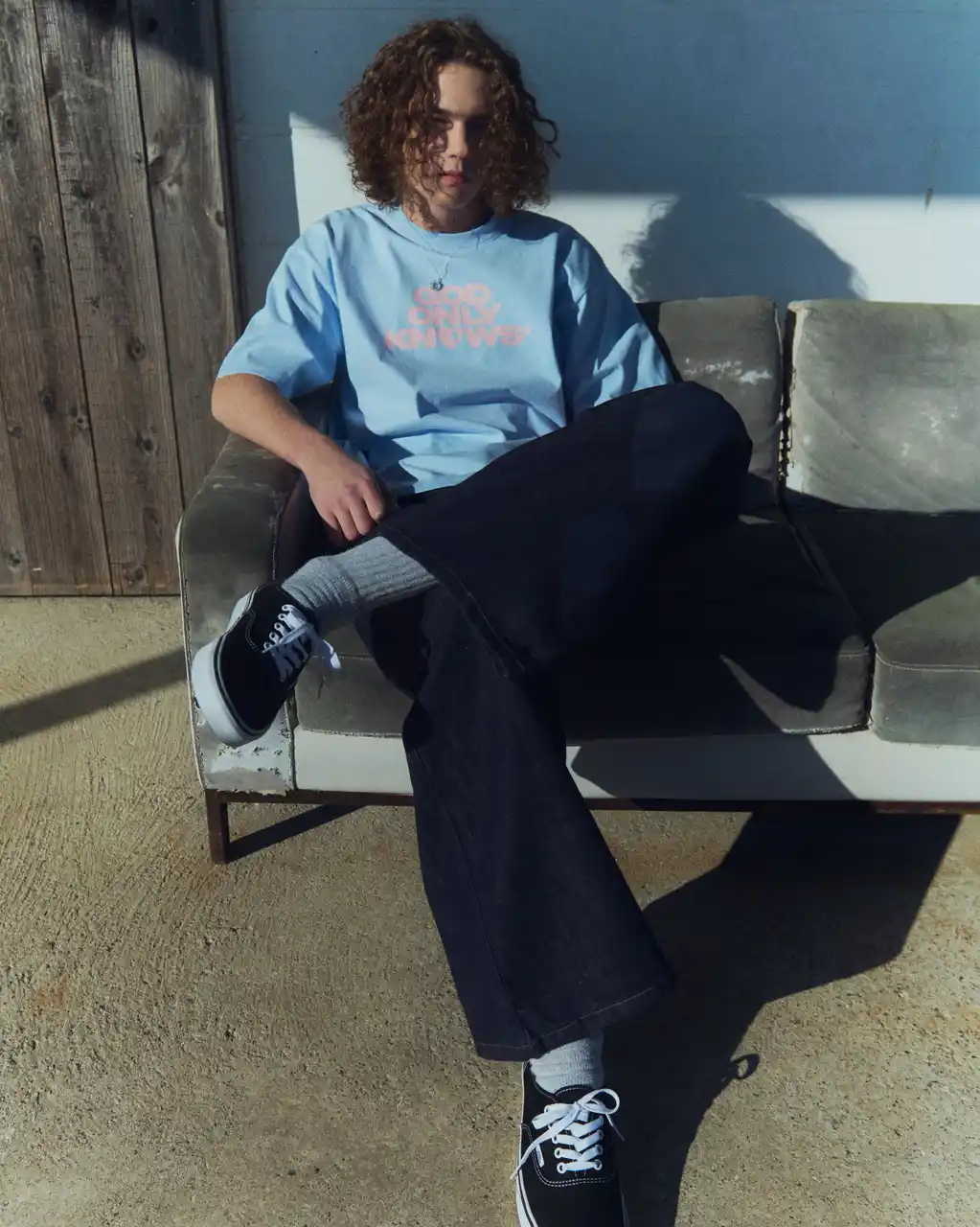 サーモンピンクやベージュ、ライトブルーをメインに、オックスレッドやブラックを差し色にしたカラーパレットは、自由でエフォートレスな遊び心を纏ったストリートスタイルとして今季のGOD ONLY KNOWSを表現しています。 |