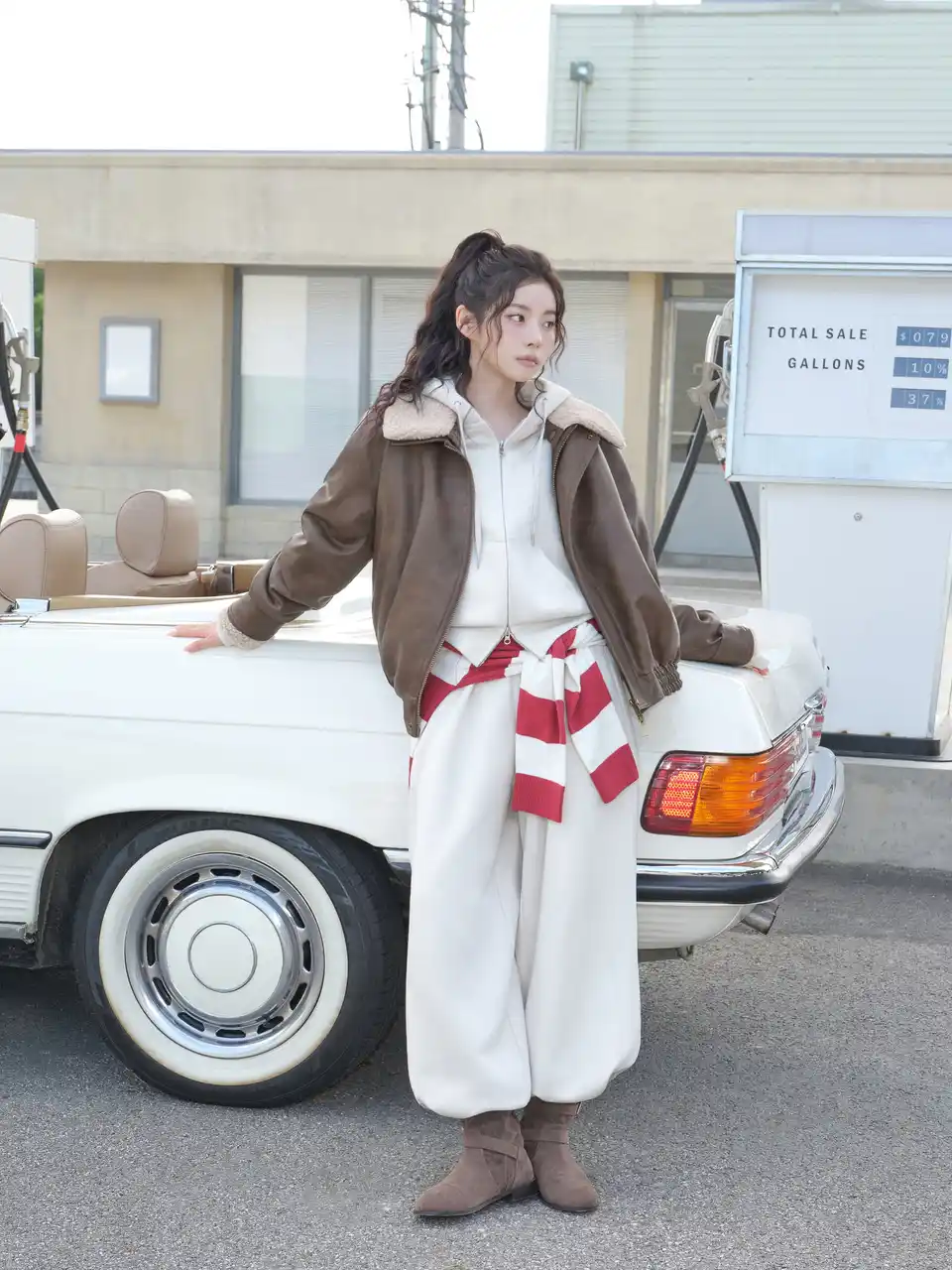 オーバーフィット裏起毛スウェットセットアップです。ジップアップパーカーは全体的に余裕のあるフィット感で、大きめのフードが特徴です。スウェットパンツはワイドフィットで裾にドローストリングがついているため、ジョガーパンツっぽく演出することも可能です。 |
