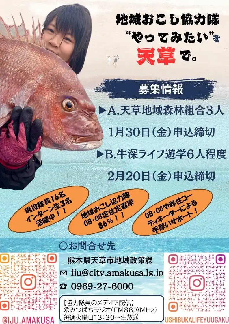 ・SNSを活用し職場体験談や地域の魅力、牛深での生活状況の発信。 |