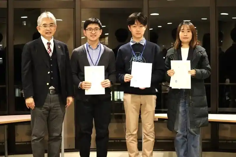 シンポジウム後には、同キャンパスで交流会も開催。冒頭、菅理事からあいさつとともに、今後の活動への期待を込めたコメントがありました。その後、菅理事からも長時間のシンポジウム参加への労をねぎらう言葉とともに最優秀発表賞と優秀発表賞の3人に対して表彰状が授与されました。 |