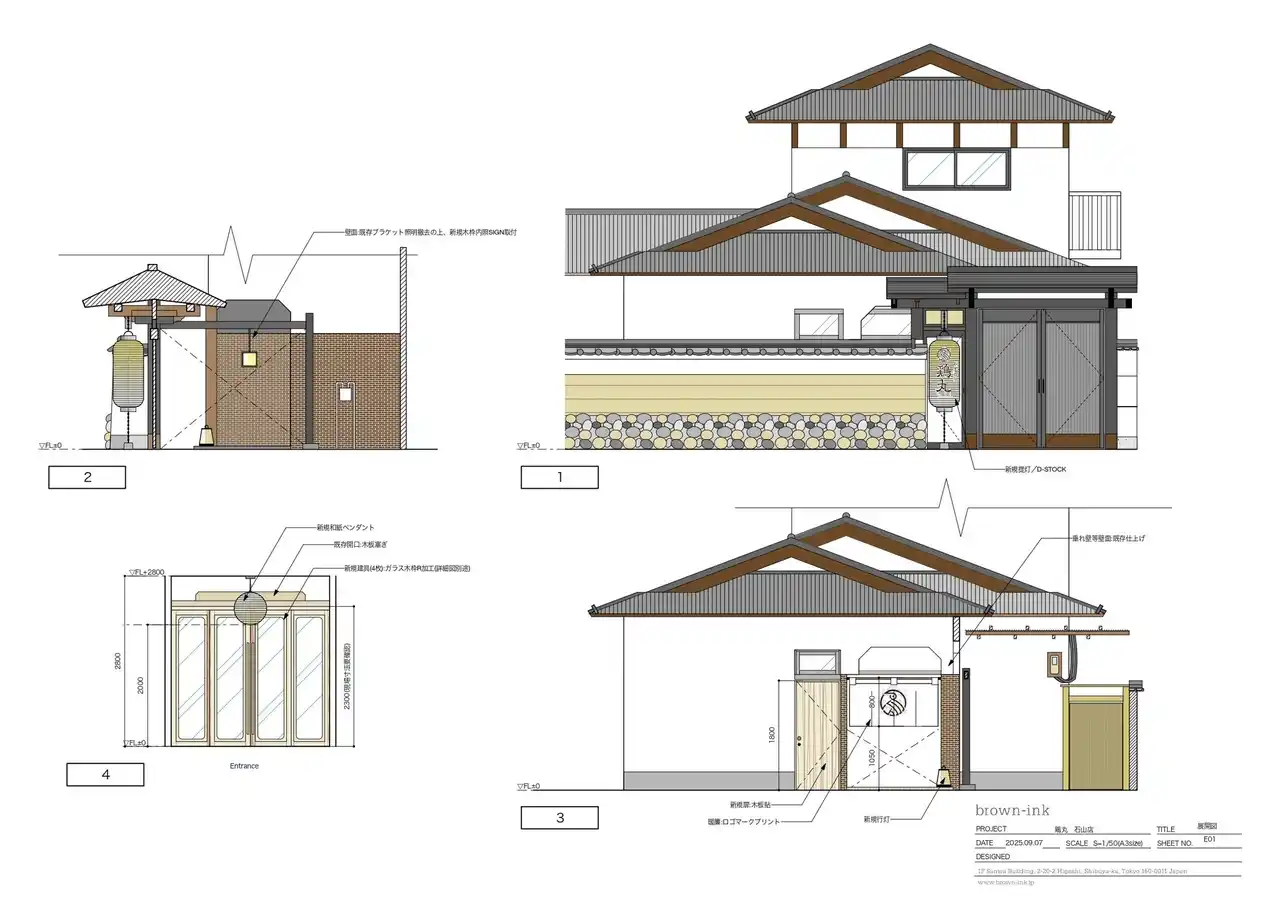 古民家ならではの余白と落ち着きを大切にしながら、 石山の街の日常に自然と溶け込む飲食店として設計されています。 |