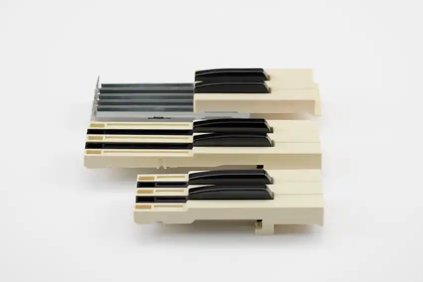 XK-7&7Dで新たに搭載した6L鍵盤は、各キーに6つの接点を設け、鍵盤を少しずつゆっくりと押していくと微細な多列接点の演奏感を実現。9接点を有するヴィンテージオルガンに迫るレスポンスです。また鍵盤長をヴィンテージオルガンと同設計にすることで、支点から演奏される点までの距離も同じになり、打鍵感もさらに近づきました。 |