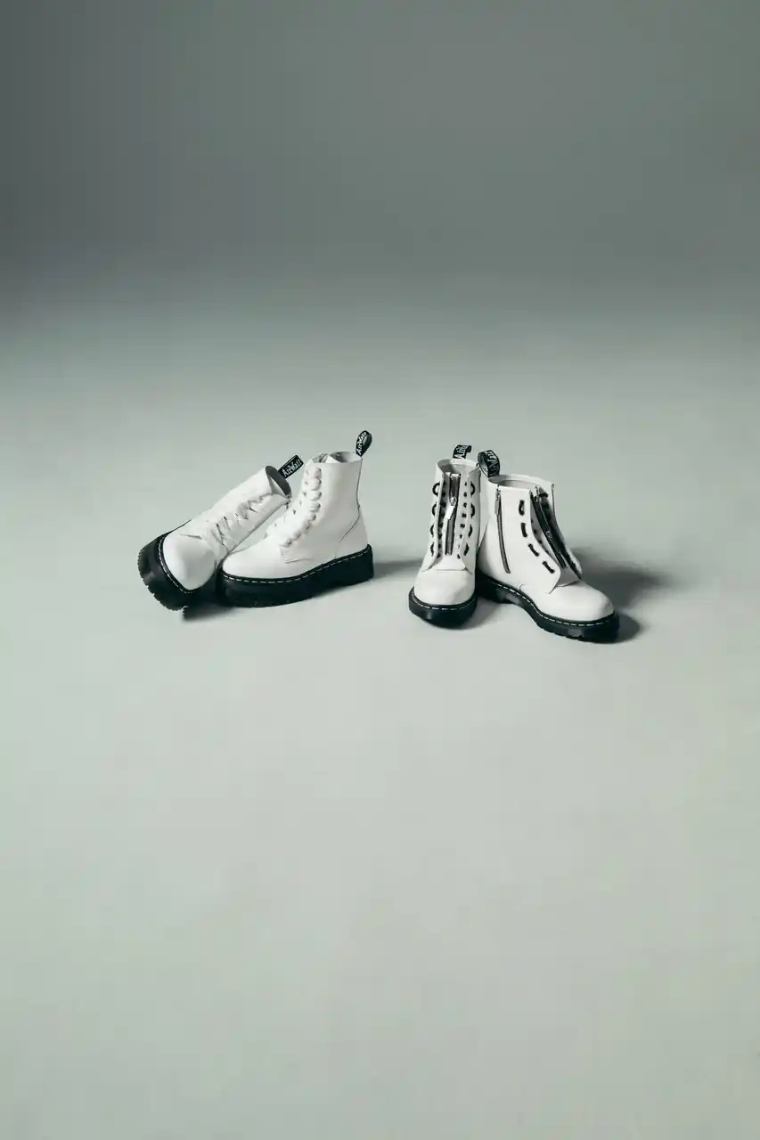 “THE WHITE SMOOTH”は、プレーンで美しさを感じさせるホワイトスムースレザーをアッパーに、取り外し可能なZIPパーツで2WAYが可能なジャングルブーツタイプの1460 ZIPブーツとJADONをラインナップ。いずれもフラットの太いセカンドシューレースで違った表情を楽しめる。日本限定発売の特別なコレクションに仕上がっている。 |