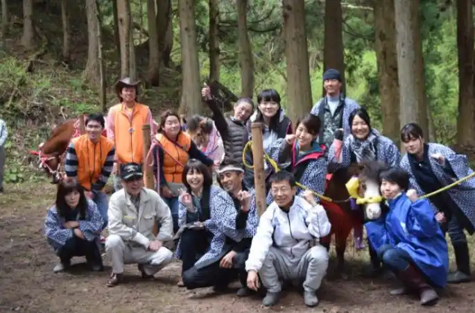 「一頭でも多くの馬の命をつなぎたい」 そんな想いから、松原ステーブルス(代表:松原正文氏)は2005年に胎内市で養老牧場を開設。 その志に共感した下赤谷集落の協力により、2015年4月18日、3頭の馬によるシャングシャング馬が約半世紀ぶりに復活しました。 |