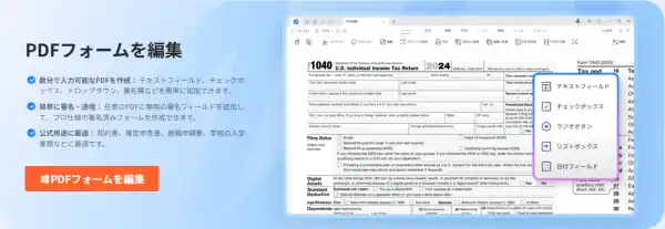 申込書や社内書類、各種申請書などに必要な入力可能なPDFフォームを手軽に作成できます。