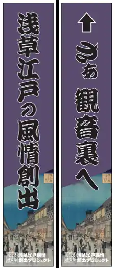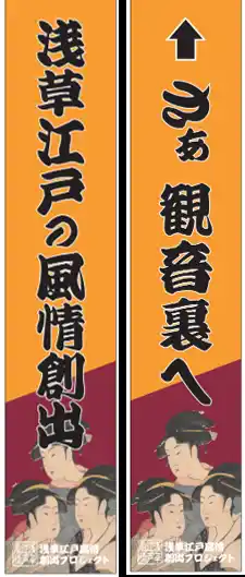 3.浅草六区を江戸の浮世絵をイメージしたのぼりで演出 |