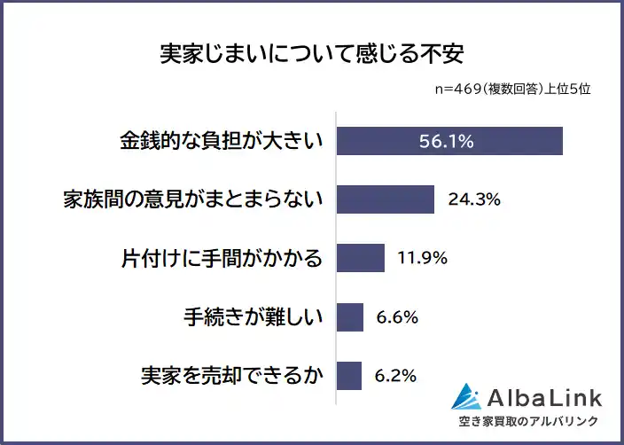 株式会社AlbaLink(本社:東京都江東区、代表取締役:河田 憲二)は、実家じまいに関心がある469人を対象に「実家じまいの話し合いに関する意識調査」を実施し、そのデータをランキングにしました。