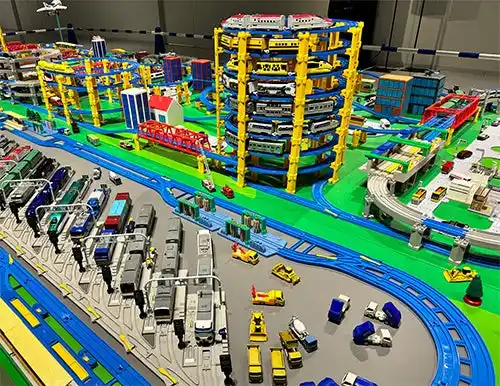 トミカやプラレールがいっぱい!楽しいジオラマだよ! |