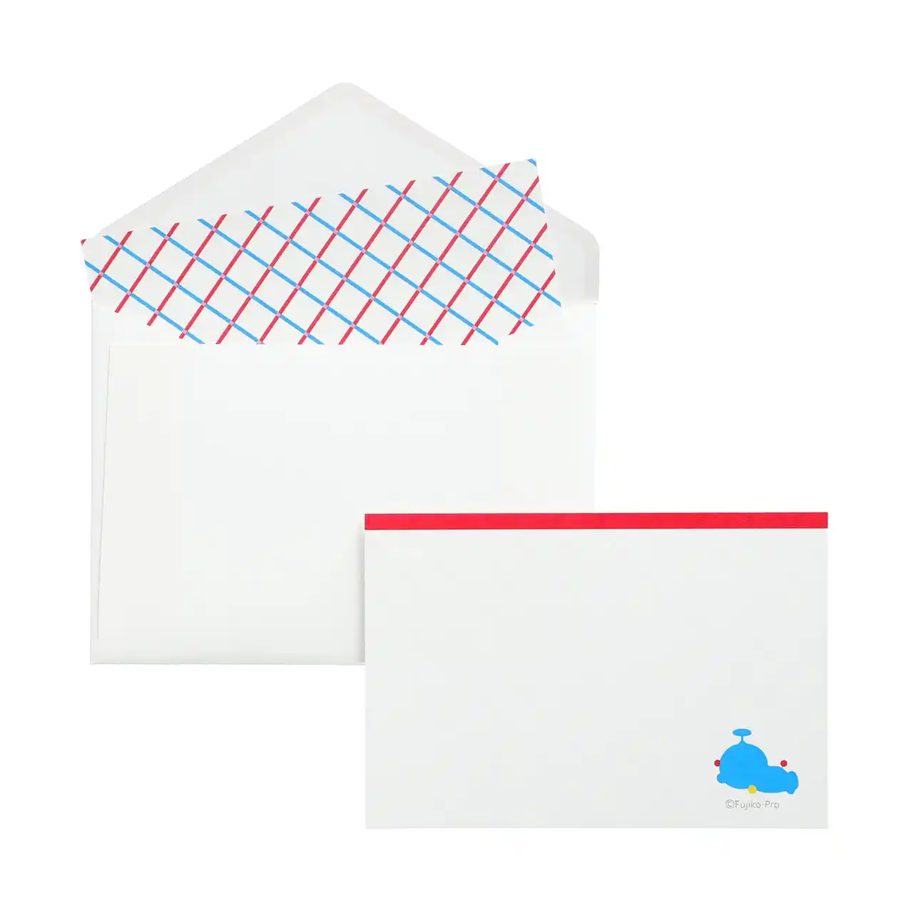 封筒とメッセージカードの表面にTHE DORAEMON STOREのロゴマークをあしらった、メッセージカードセットです。封筒の裏面には四次元ポケット、メッセージカードの裏面にはドラえもんをイメージしたチェック柄をデザインしました。 |