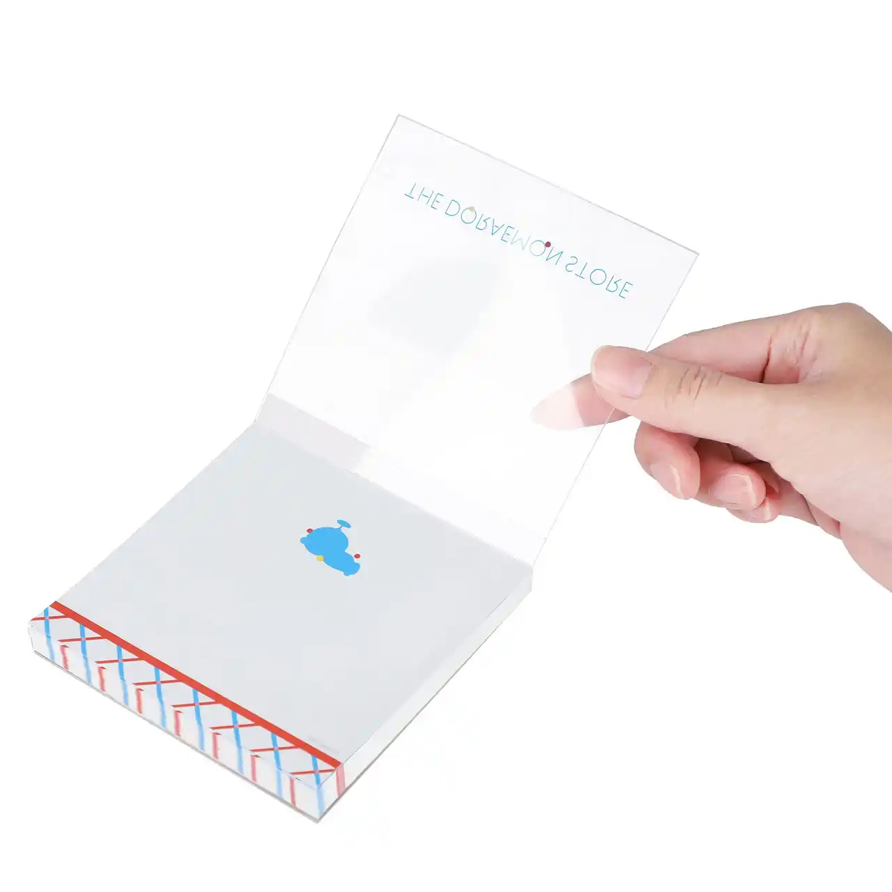 THE DORAEMON STOREのロゴマークをあしらった、ブロックメモです。コンパクトなサイズ感で持ち運びしやすく、クリアカバーには角度を変えると見え隠れする、同色の四次元ポケットをデザインしました。 |