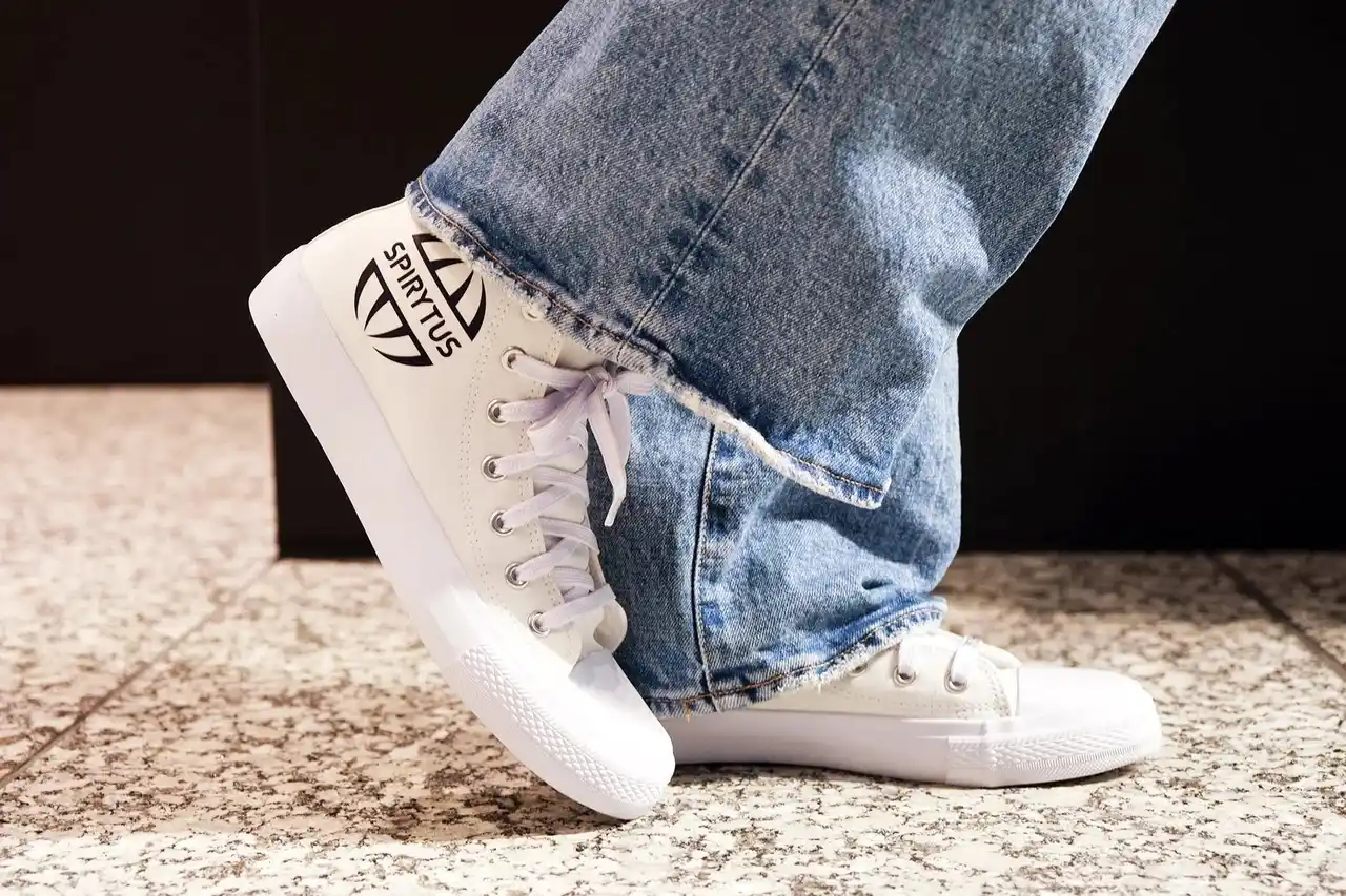 アニメED映像に登場している、スピリタス社ロゴ入りハイカットスニーカーです。さりげないあしらいが、日常使いにぴったり。サイズは、S(23cm相当)/M(24cm相当)/L(25cm相当)の3サイズ展開です。 |
