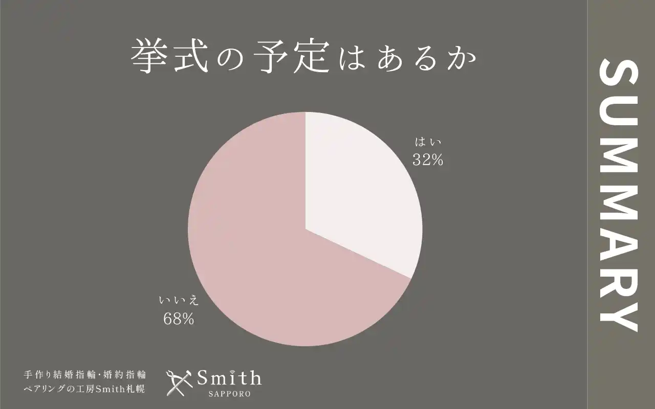 | 年間累計で約7割(68.0%)のお客様が挙式を予定していないという結果になりました。これは、従来の「結婚が決まったらまず式場探し」という動線が大きく変化していることを示しています。 | |||