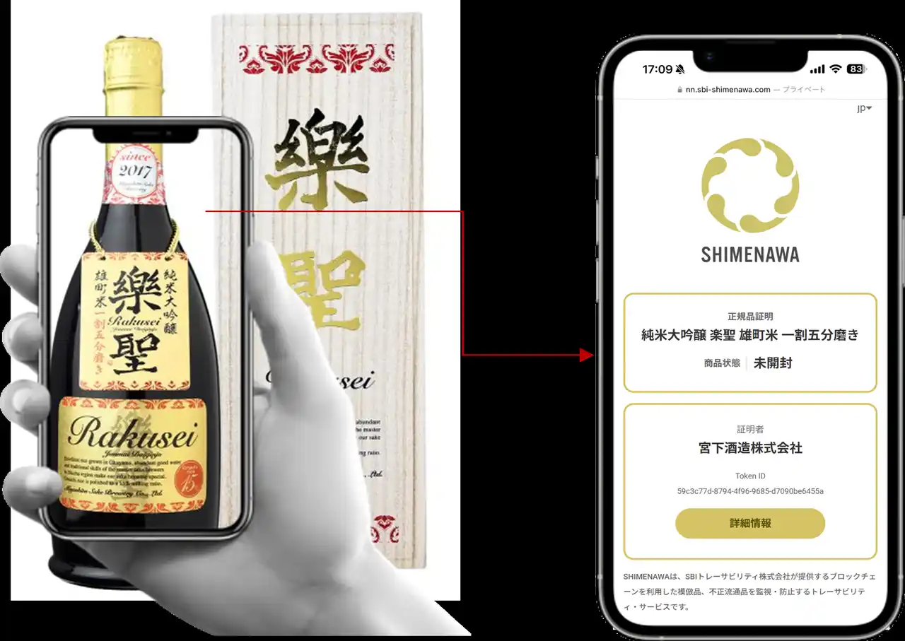 SBIトレーサビリティ株式会社(本社:東京都港区、代表取締役:林口 文彦)は、ブロックチェーン×IoT(NFCタグ)の技術融合により現物資産とデジタル情報の強固な紐付けを可能とするトレーサビリティ・サービス「SHIMENAWA(しめなわ)」(以下「SHIMENAWA(しめなわ)」)が日本酒「極聖」醸造元の宮下酒造株式会社(本社:岡山市中区西川原、代表取締役社長:宮下晃一、以下「宮下酒造」)で導入されたことをお知らせいたします。 |