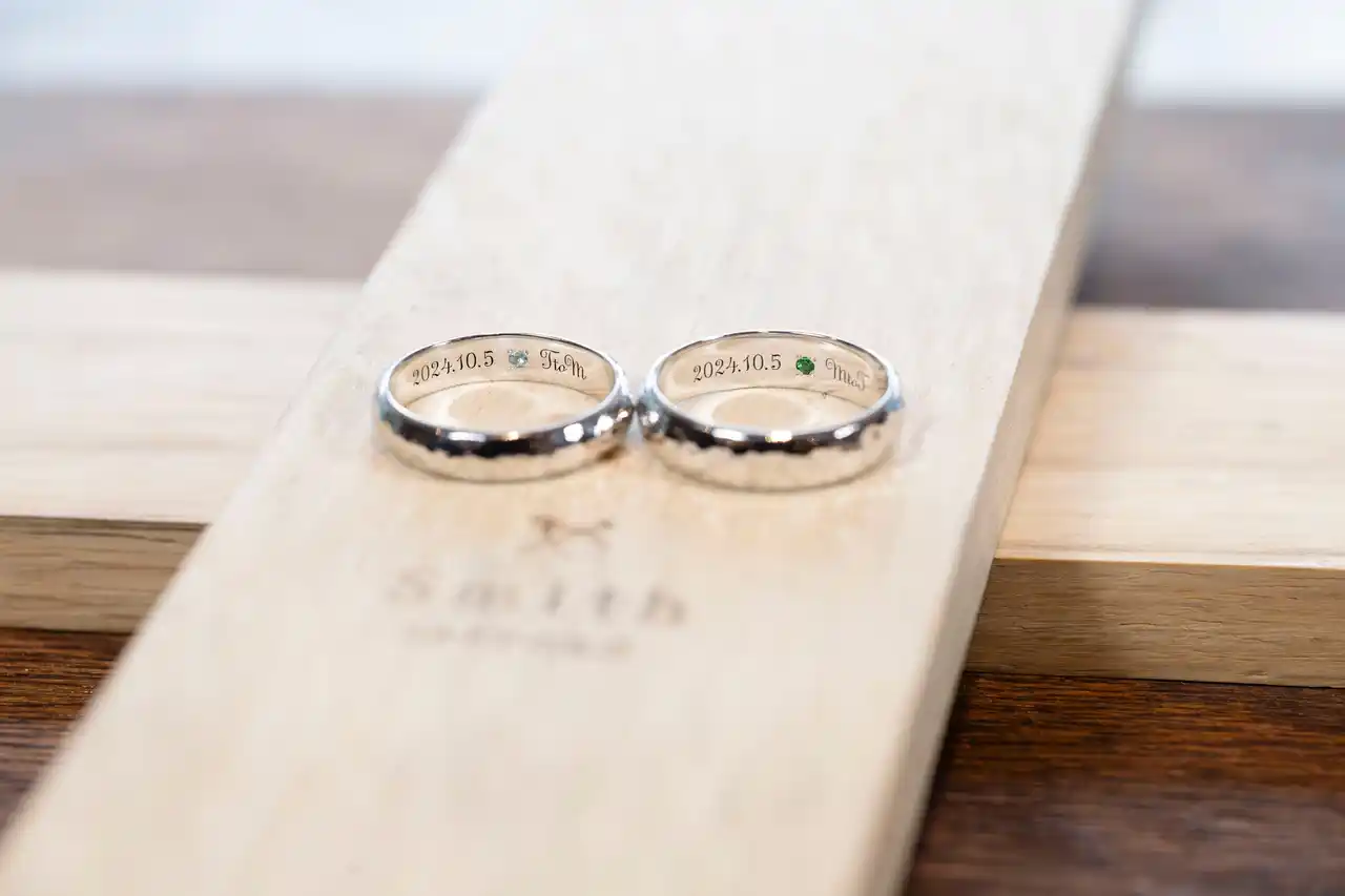 | 流行に左右されず、1年を通して6割以上のお客様が選ばれた、まさに「手作り指輪の心」とも言えるオプションです。お二人の名前や記念日だけでなく、二人だけの合言葉や誓いのメッセージを刻むことで、「世界に一つの指輪」を完成させる最終ステップとして、その価値が揺らぐことはありませんでした。 | |||||||||