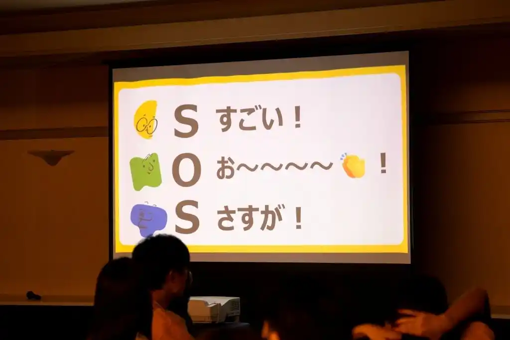発表者に対して行うリアクションのSOSです。皆様のご協力もあり、今回も、楽しくやさしい空気の中、会を進行させていただくことができました。 |