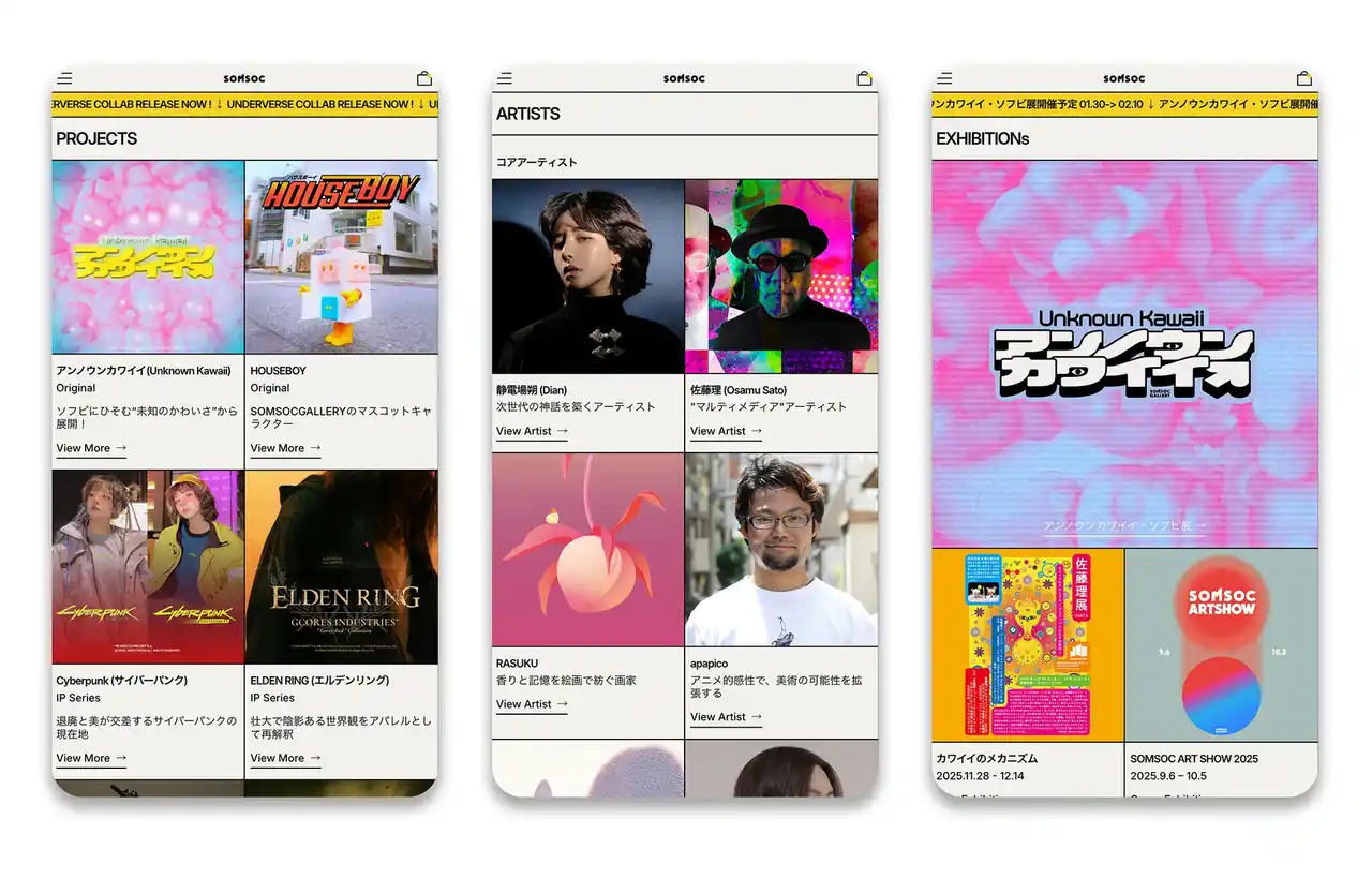 東京・原宿を拠点に、アート・ファッション・カルチャーを横断する活動を展開してきたSOMSOC GALLERYは、このたび新公式ウェブサイトを1月23日(金)に公開しました。 |
