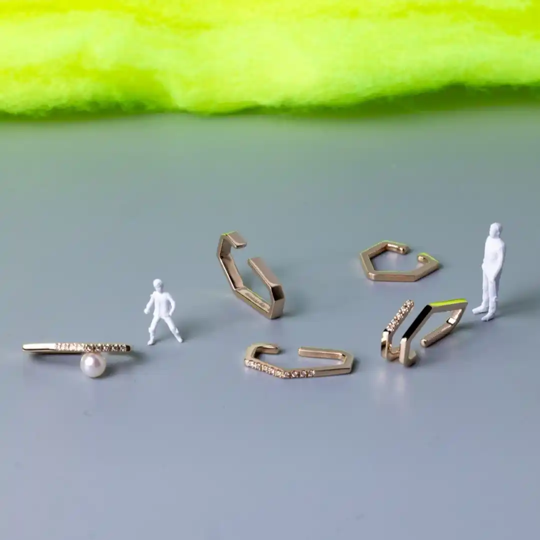その構築美を継承するHirotakaの定番「マンハッタン」コレクションから、新作イヤーカフ全9型がラインナップ。 |