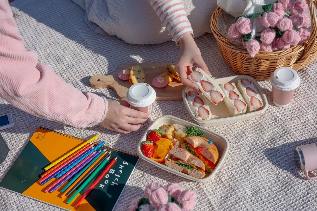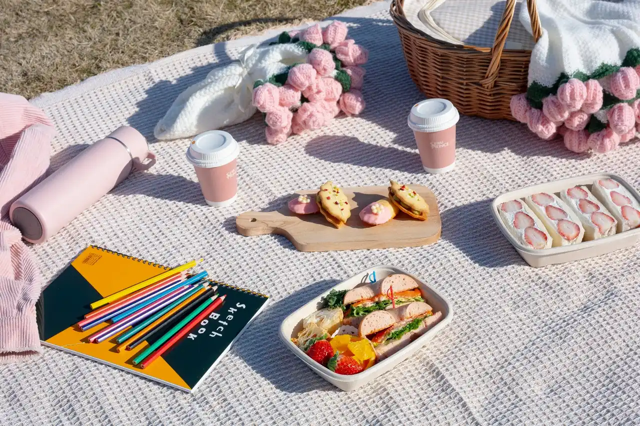 地元食材にこだわったピクニックBOXと、ゆったりくつろげるラグマットや思い出を形に残すアートセット、春色で統一した小物などのフォトジェニックな貸出グッズもご用意いたします。 |